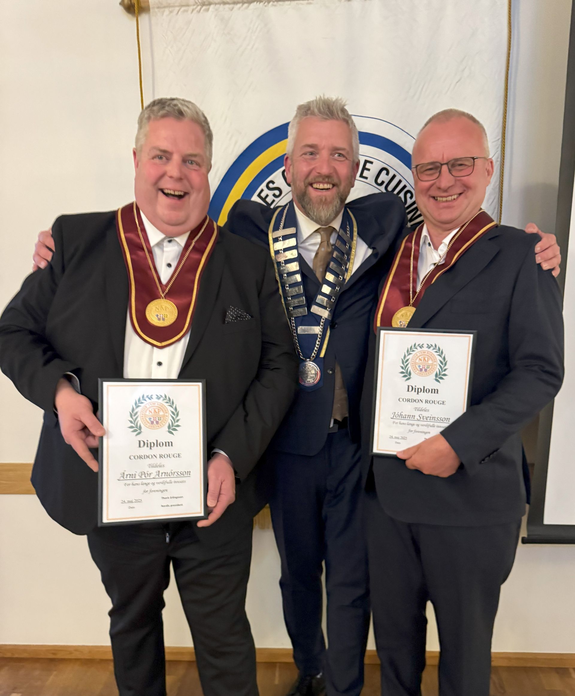 Á hátíðarkvöldverði Norðurlandasamtaka matreiðslumeistara (Nordic Chefs Association), sem haldinn var á Tjörns Havspensionat í Rönnäng í Svíþjóð um helgina, voru tveir íslenskir matreiðslumeistarar heiðraðir með Cordon Rouge orðu samtakanna. Þetta voru þeir Árni Þór Arnórsson og Jóhann Sveinsson. Cordon Rouge orðan er veitt fyrir framúrskarandi framlag til fagmennsku og þróunar í matreiðslu á Norðurlöndum. Orðan er veitt þeim sem hafa skarað fram úr í störfum sínum, stuðlað að framgangi fagsins og lagt sitt af mörkum til samstarfs og tengsla á sviði matargerðar milli Norðurlanda.